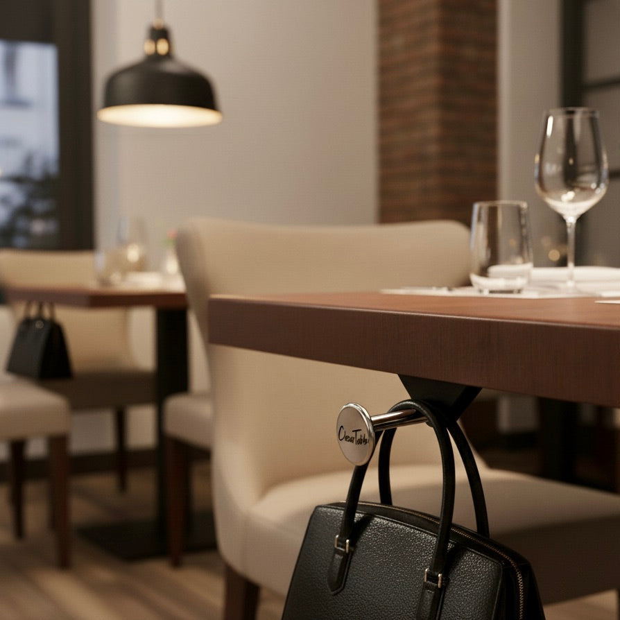 Maximize space and keep your belongings within reach with our Under Table Purse & Bag Hanger!