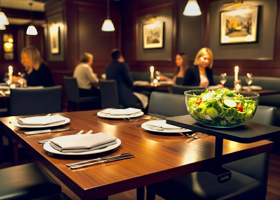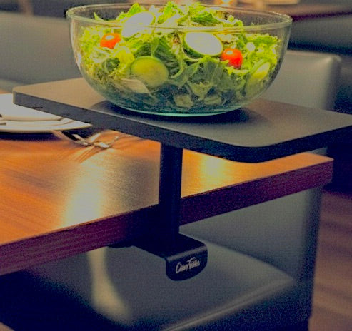 Eliminate the need for a free standing buss tray and stand that blocks the isle and can be tipped over. Simply slide out our under table socket and add one of our ClearTable shelves for secure extra serving space.